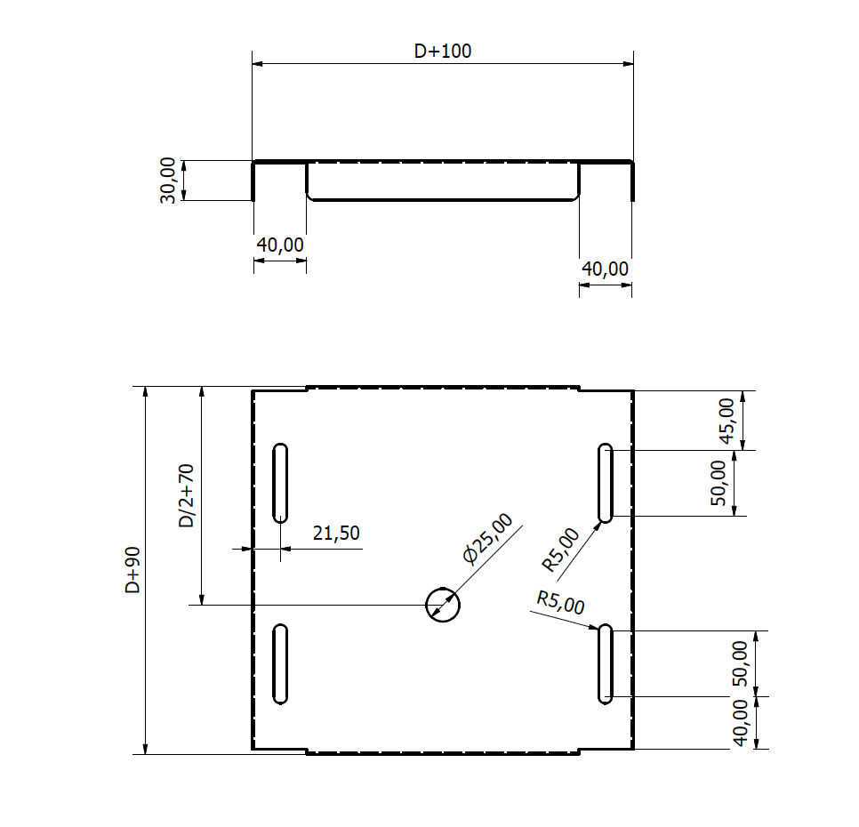 materiál: tl. 1,5 mm (třída nerezi 1.4307) - lesk