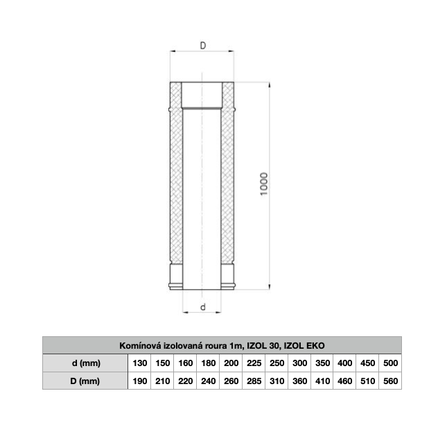 Komínová izolovaná rúra 1m, ø 200/260 mm systém IZOL 30