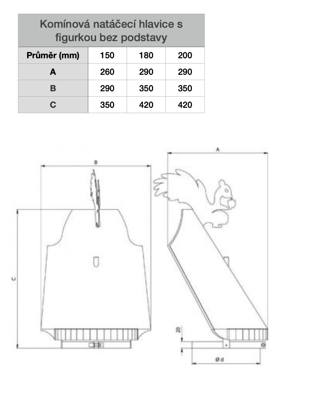 Komínová natáčecí hlavice s figurkou bez podstavce, průměr 180mm