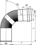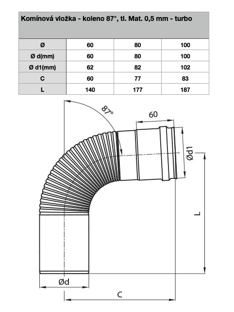 Komínová vložka - koleno 87° - ø 60mm, tl. mat. 0,5mm - turbo
