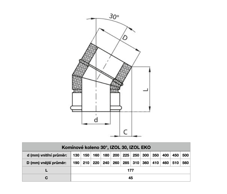 Komínové koleno 30° ø 130/190 mm, systém IZOL 30