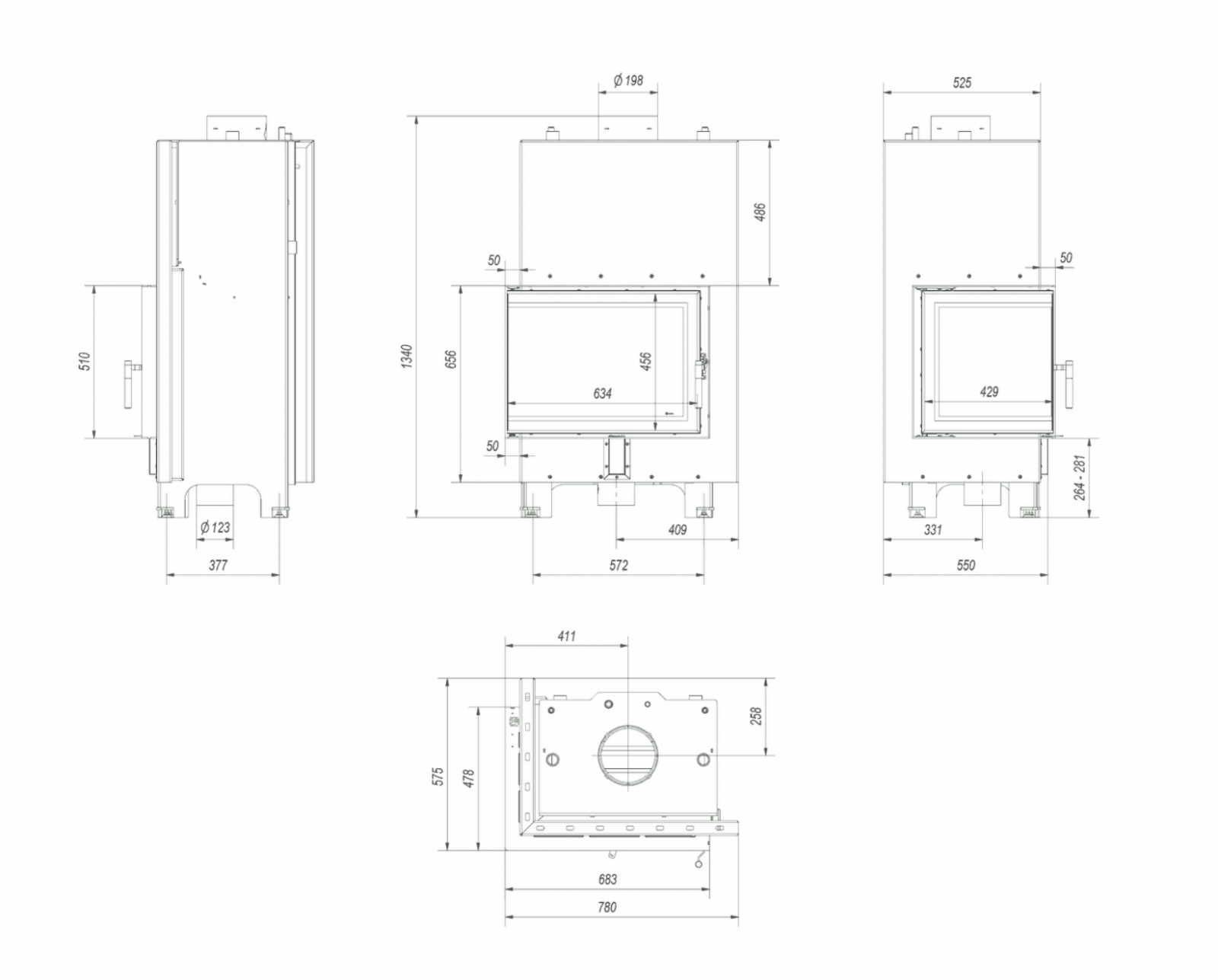 KRATKI KRATKI MBZ 13 kW Ø 200 teplovodní krbová vložka levá