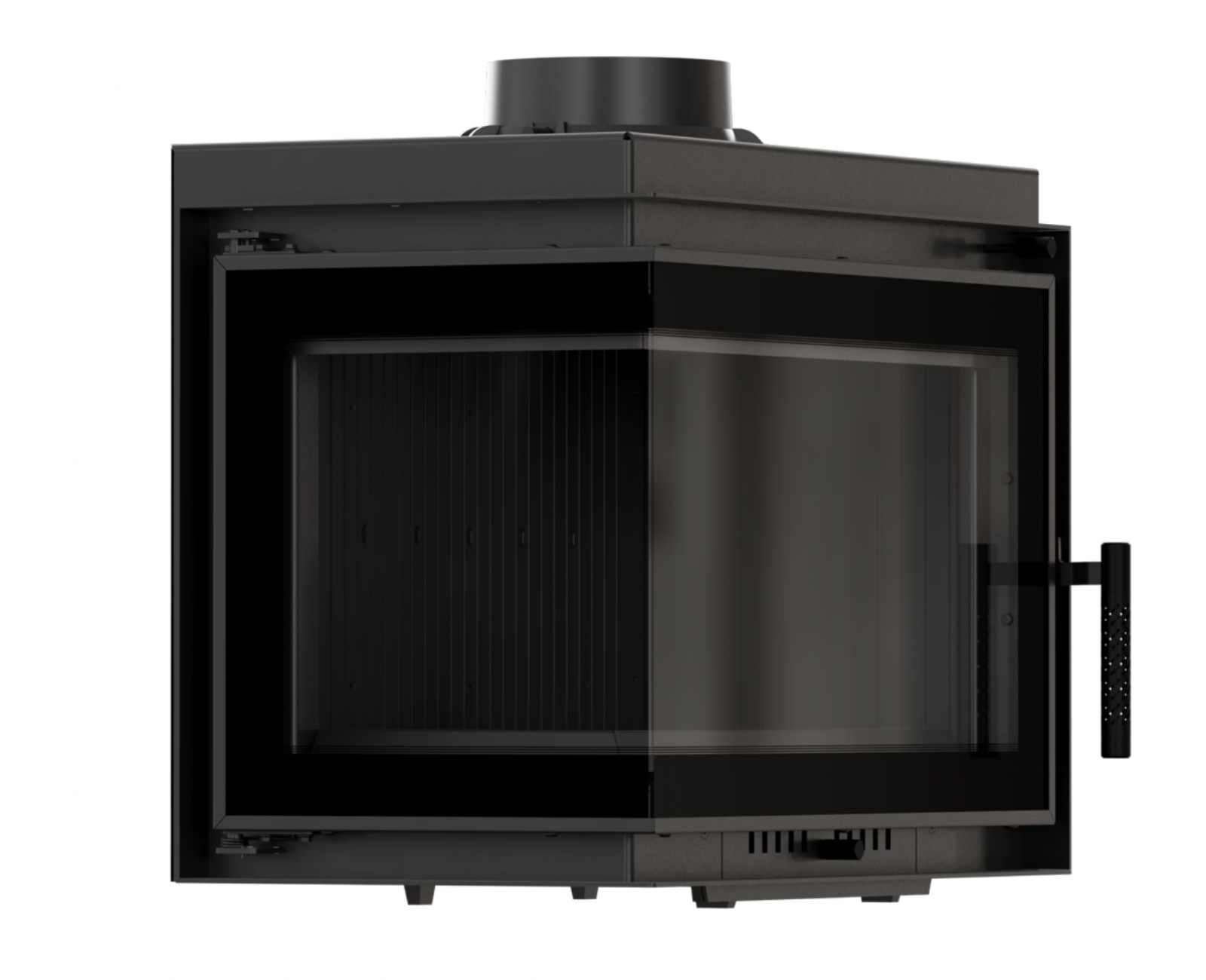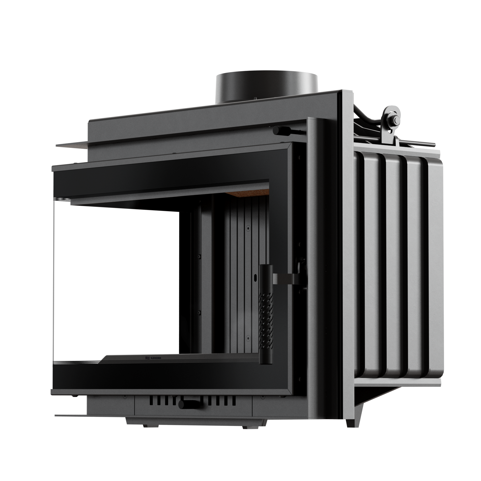 Rohové presklenie na ľavej strane umožňuje krásny pohľad na oheň z rôznych častí miestnosti a zároveň dodáva krbu moderný vzhľad. Integrovaný systém prúdenia vzduchu navyše pomáha udržovať sklo dlhšie čisté a zaisťuje ničím nerušený pohľad do ohniska.