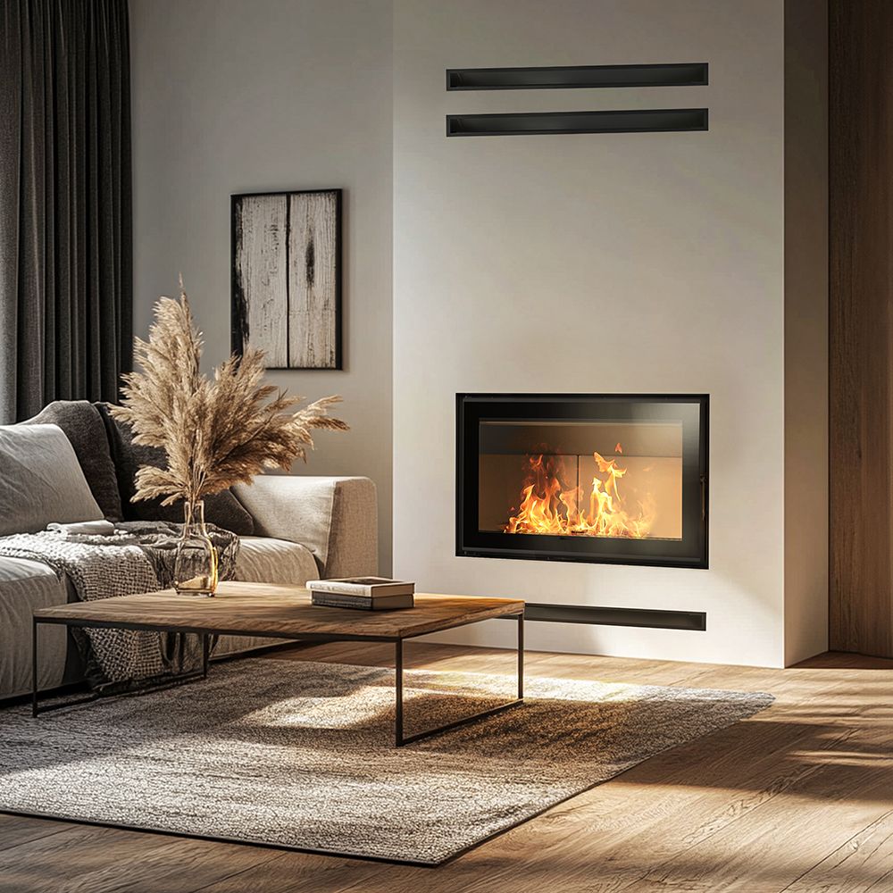 Dominantou vložky je veľké dekoratívne sklo, ktoré umožňuje krásny a ničím nerušený pohľad na plamene. Moderná konštrukcia spaľovacej komory je navrhnutá tak, aby zaistila efektívne spaľovanie a maximálne využitie energie z dreva. Obloženie spaľovacej komory z akumulačného materiálu pomáha udržovať vyššiu teplotu v ohnisku a prispieva k čistejšiemu horeniu.