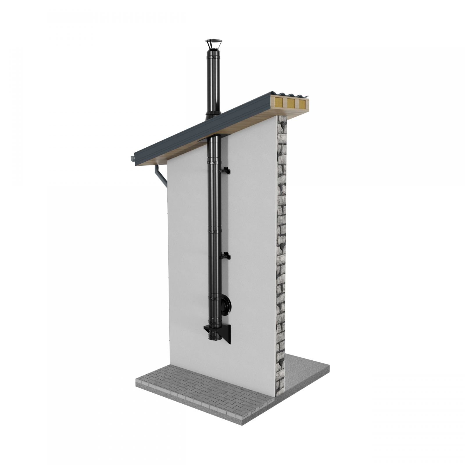 Komínovou sestavu doporučujeme doplnit o vhodný střešní přechod, případně i protipožární prostup jestliže komín prostupuje hořlavými konstrukcemi. V případě požadavku na jiný odstup komína od konstrukce, nebo jinou výšku Vám rádi připravíme nabídku na míru. Komponenty dokupované k setu lze taky nalakovat (individuálně naceníme).