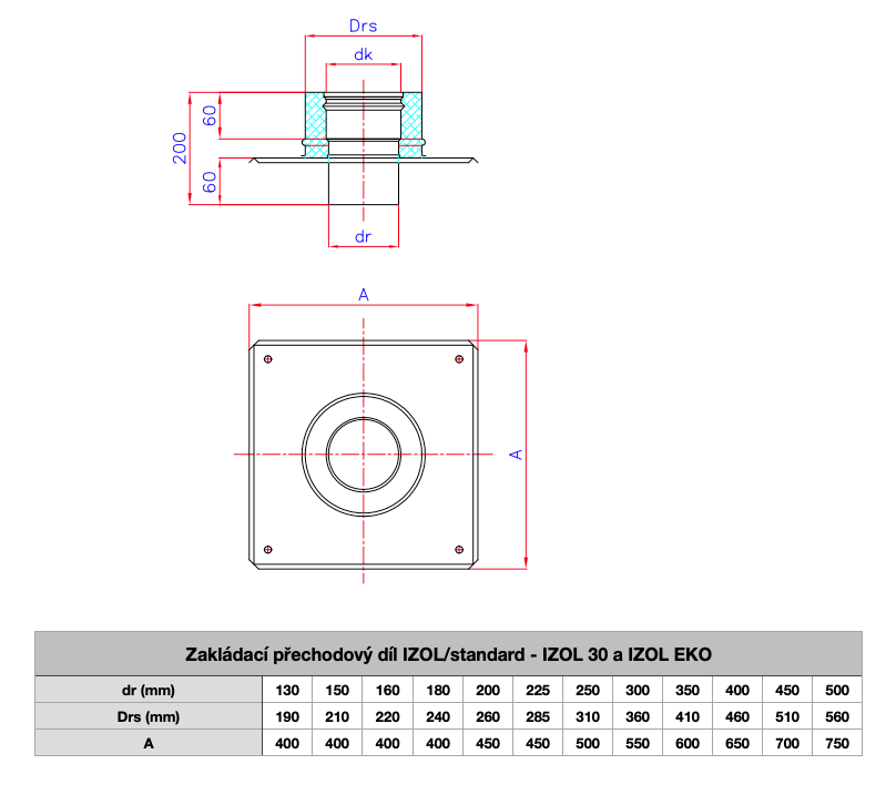 sa používa na prechod z nerezovej jednovrstvovej komínovej vložky na nerezový izolovaný systém. Najčastejšie sa používa ako zakladací diel nerezových izolovaných nástavcov. Časť nad doskou je trojšložková - systém IZOL 30, časť pod doskou je jednovrstvová - systém STANDARD 05/08.